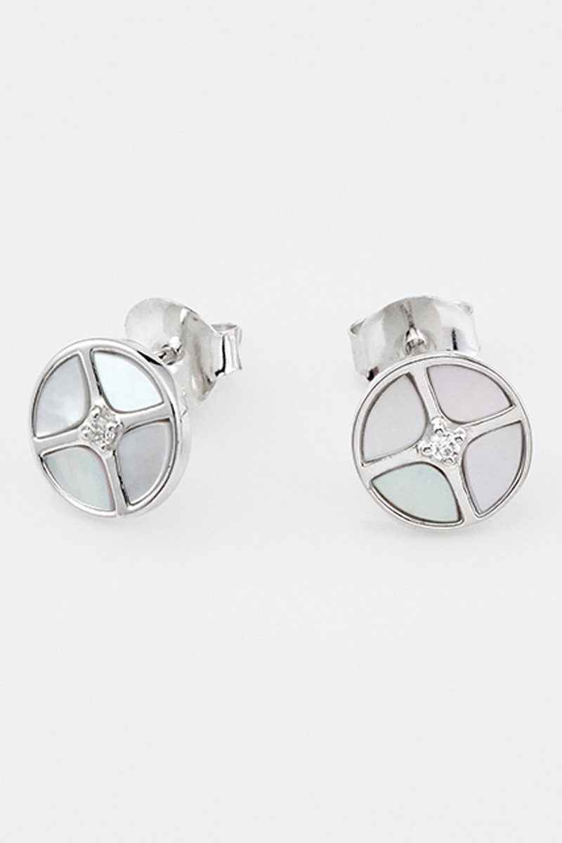 Puces en argent serties de nacre et d'oxydes de zirconium.