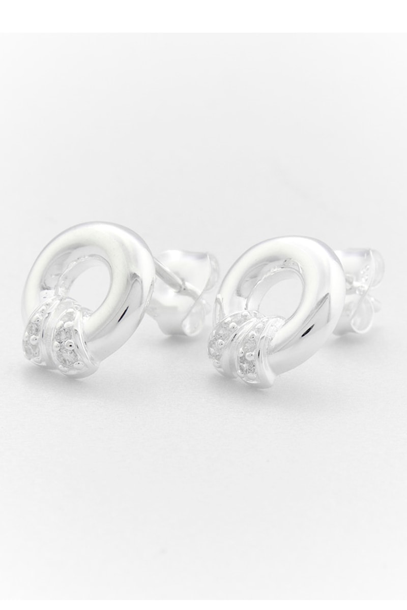 Puces en argent serties de 2 oxydes de zirconium.