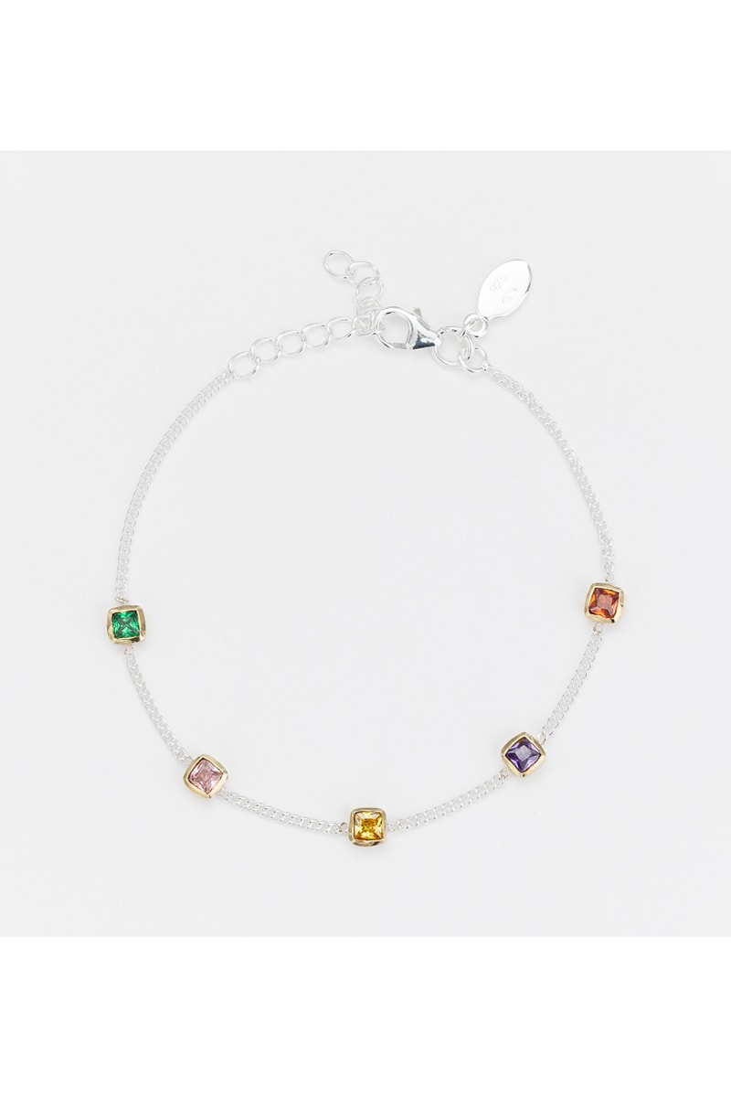 Bracelet en argent et laiton serti de 5 oxydes de zirconium.