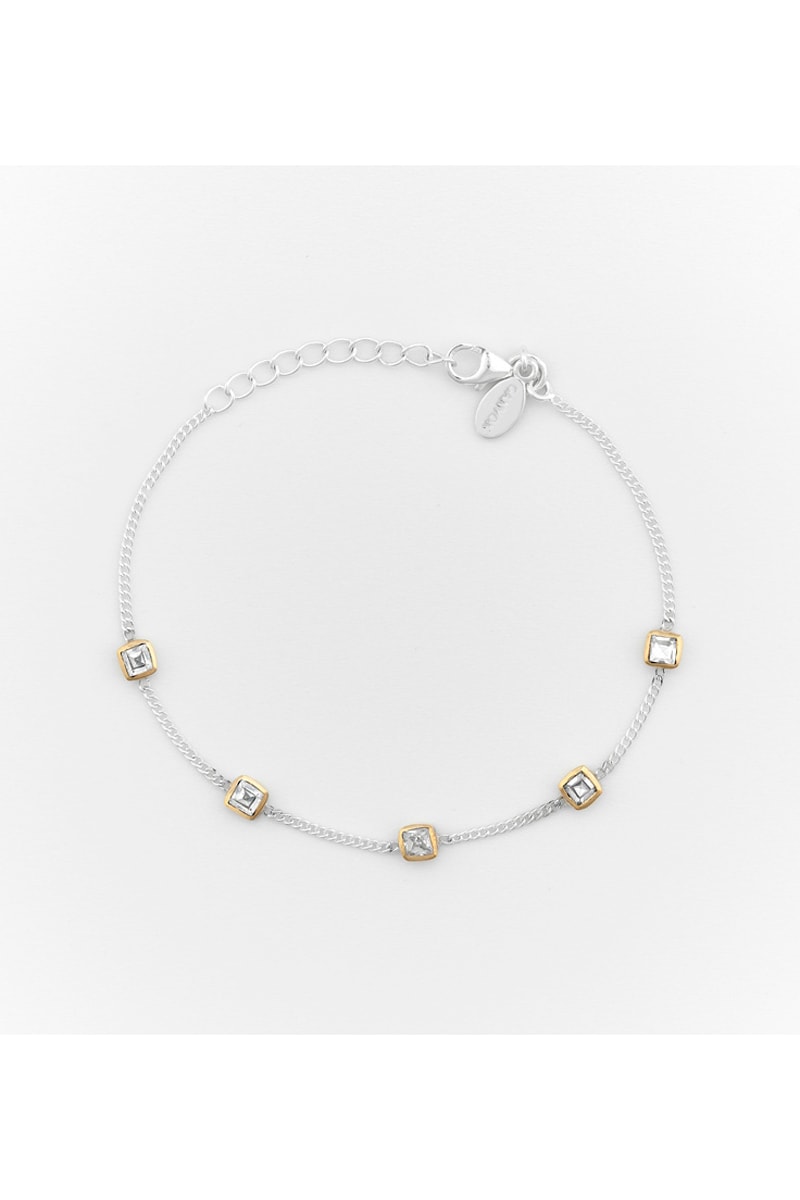 Bracelet en argent et laiton serti de 5 oxydes de zirconium.
