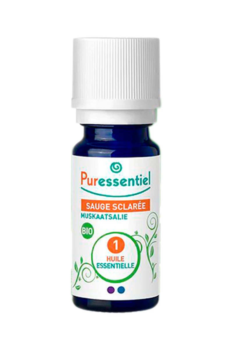 huile essentielle de sauge sclarée de Puressentiel 100 % pure. Certifiée et issue de l'agriculture biologique. L'huile essentielle de sauge sclarée est indiqué pour ses effets régulateurs sur les problèmes menstruels et la ménopause, la transpiration. Elle est réputée pour favoriser la pousse des cheveux et a aussi un effet positif sur les cheveux gras et les pellicules.