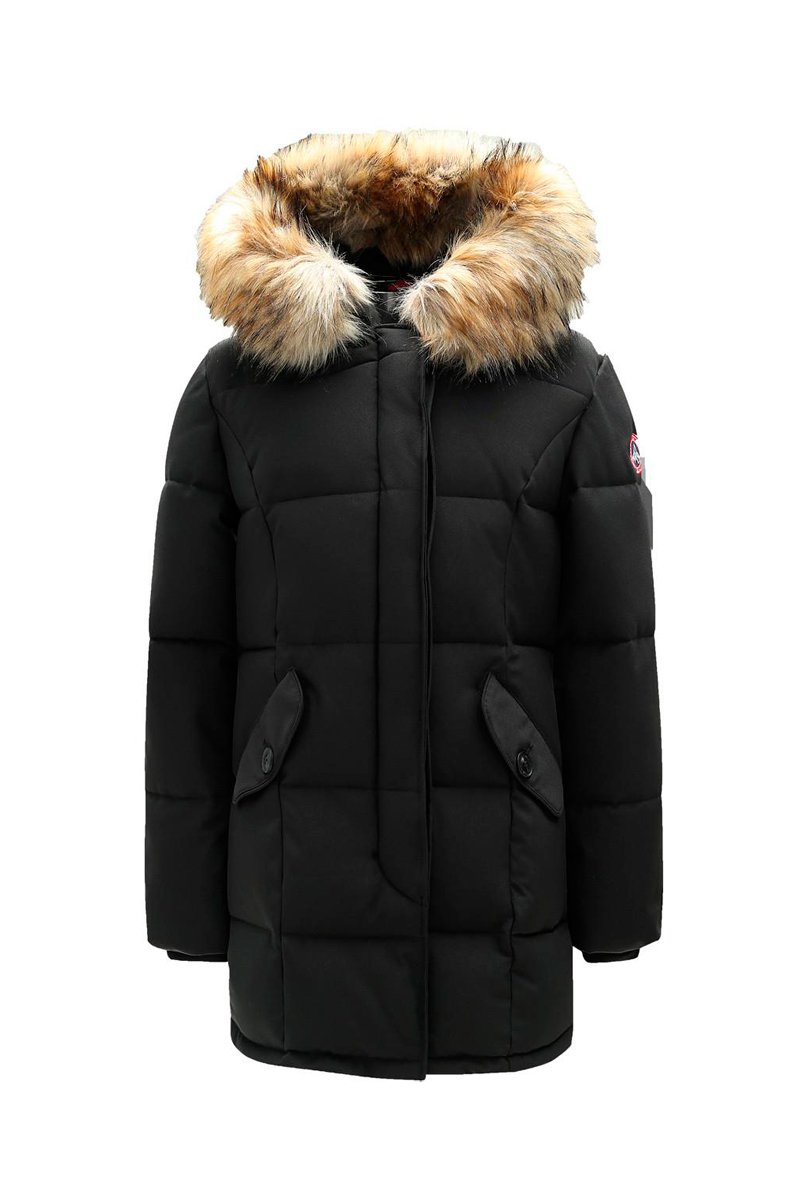 Parka à capuche avec fourrure synthétique.