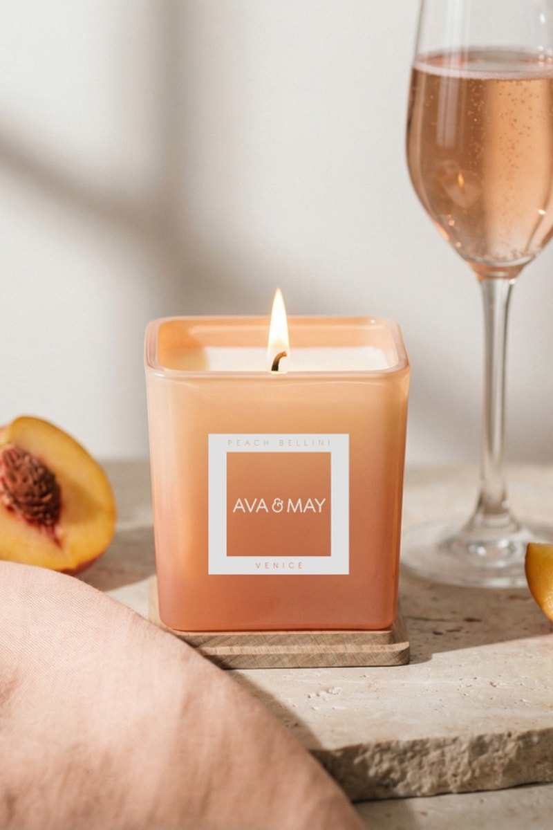 Bougie parfumée "fruité" à la cire de soja Peach Bellini
