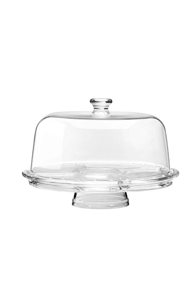 Présentoir à gâteaux en verre pressé.