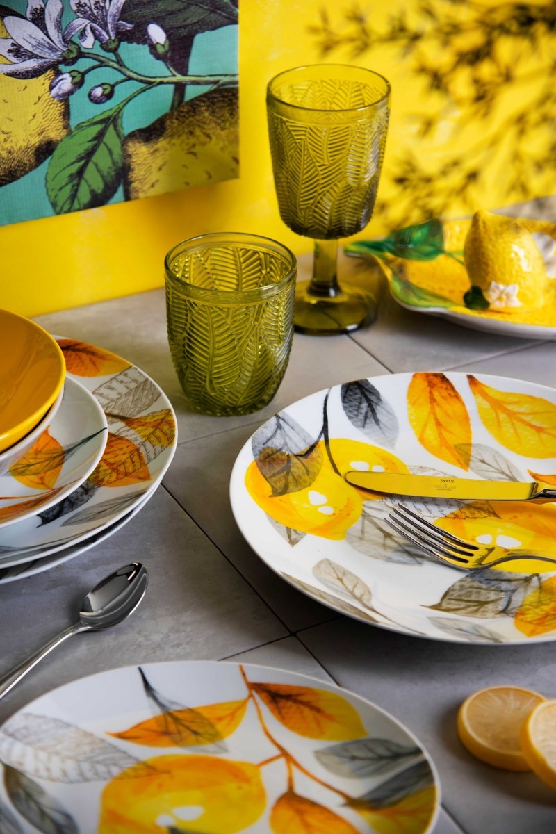 Service en porcelaine et grès Lemon Grey - 18 pièces