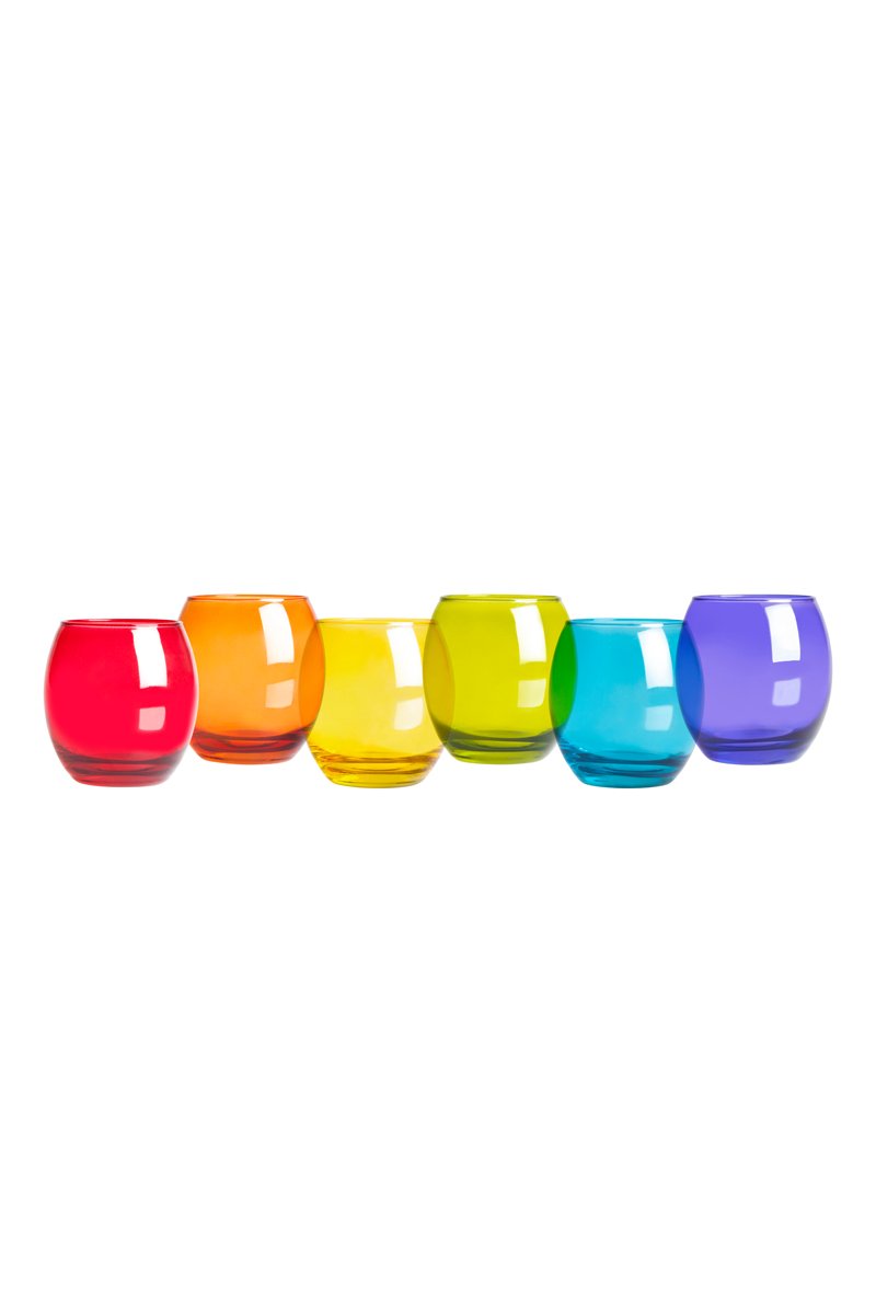 Coloris : rouge, orange, jaune, vert, turquoise et violet