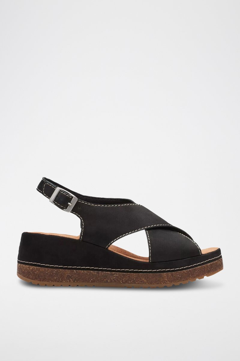 Sandales compensées en nubuck Kassanda - Noir