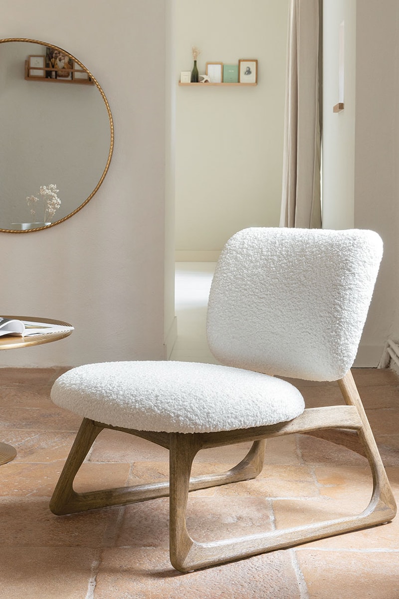 Fauteuil - Blanc - En tissu bouclette