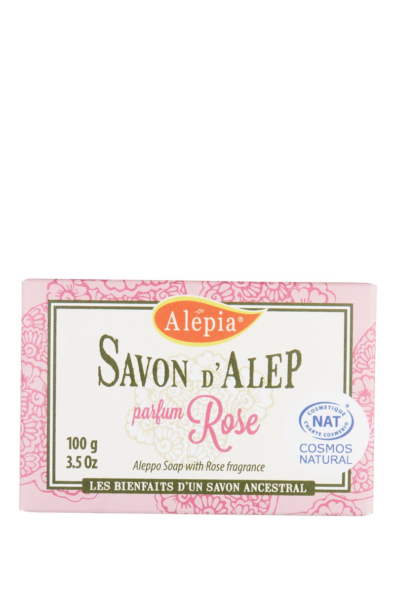 Il allie les vertus du savon d'Alep au doux parfum de la rose.
