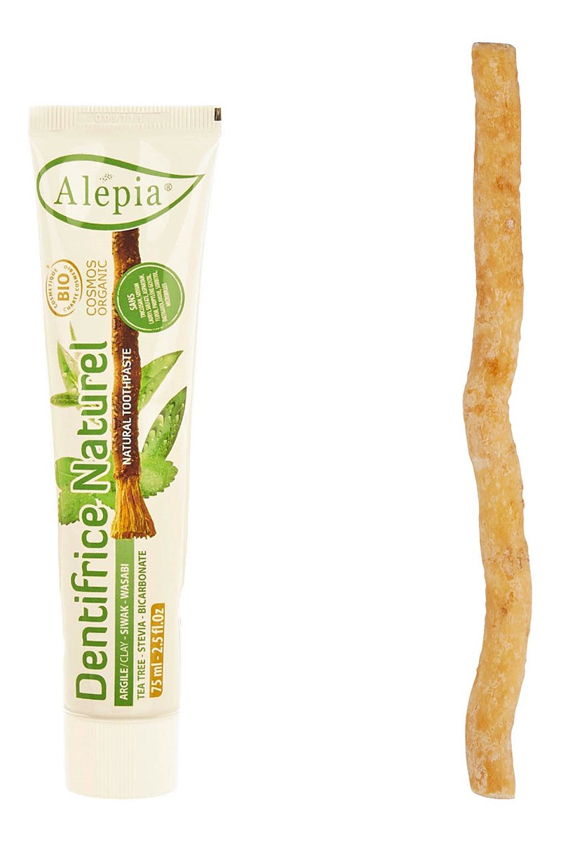 Siwak brosse à dents naturelle et étui et dentifrice naturel bio - 10 g et 75 ml