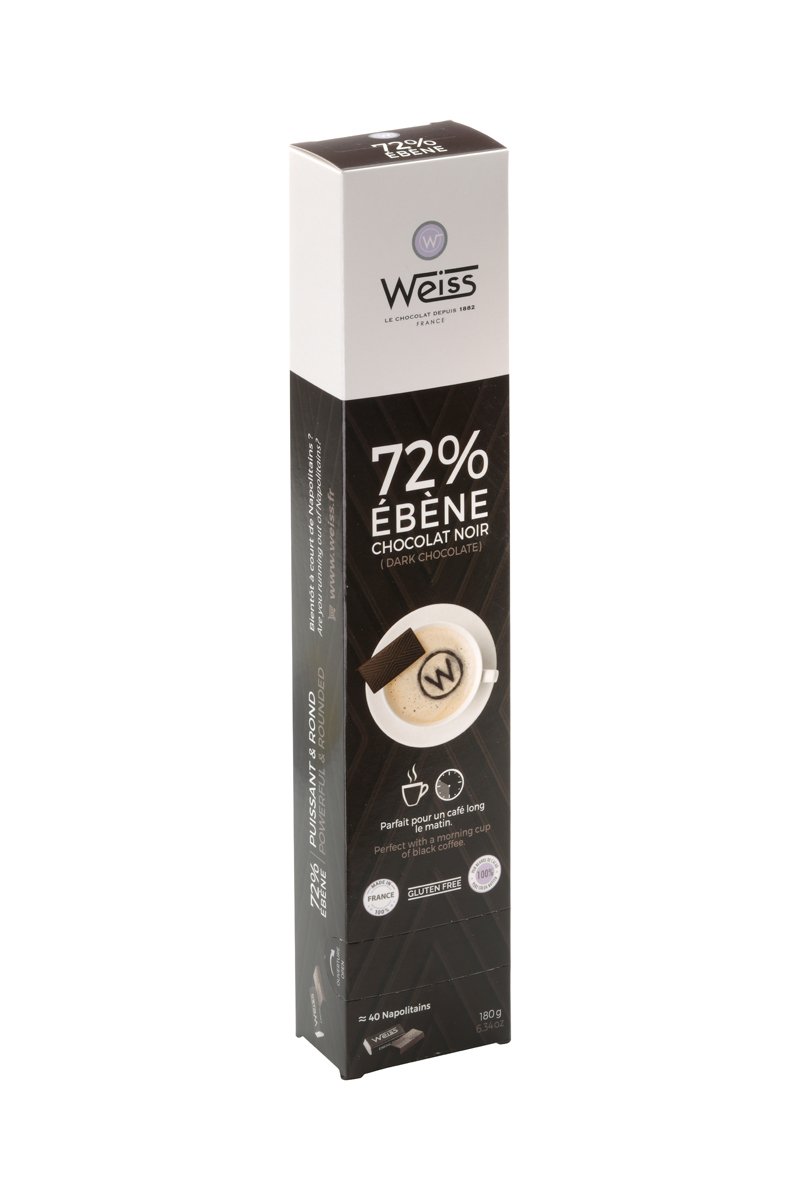 Réglette Napolitain chocolat noir ébène 72% - 180 g