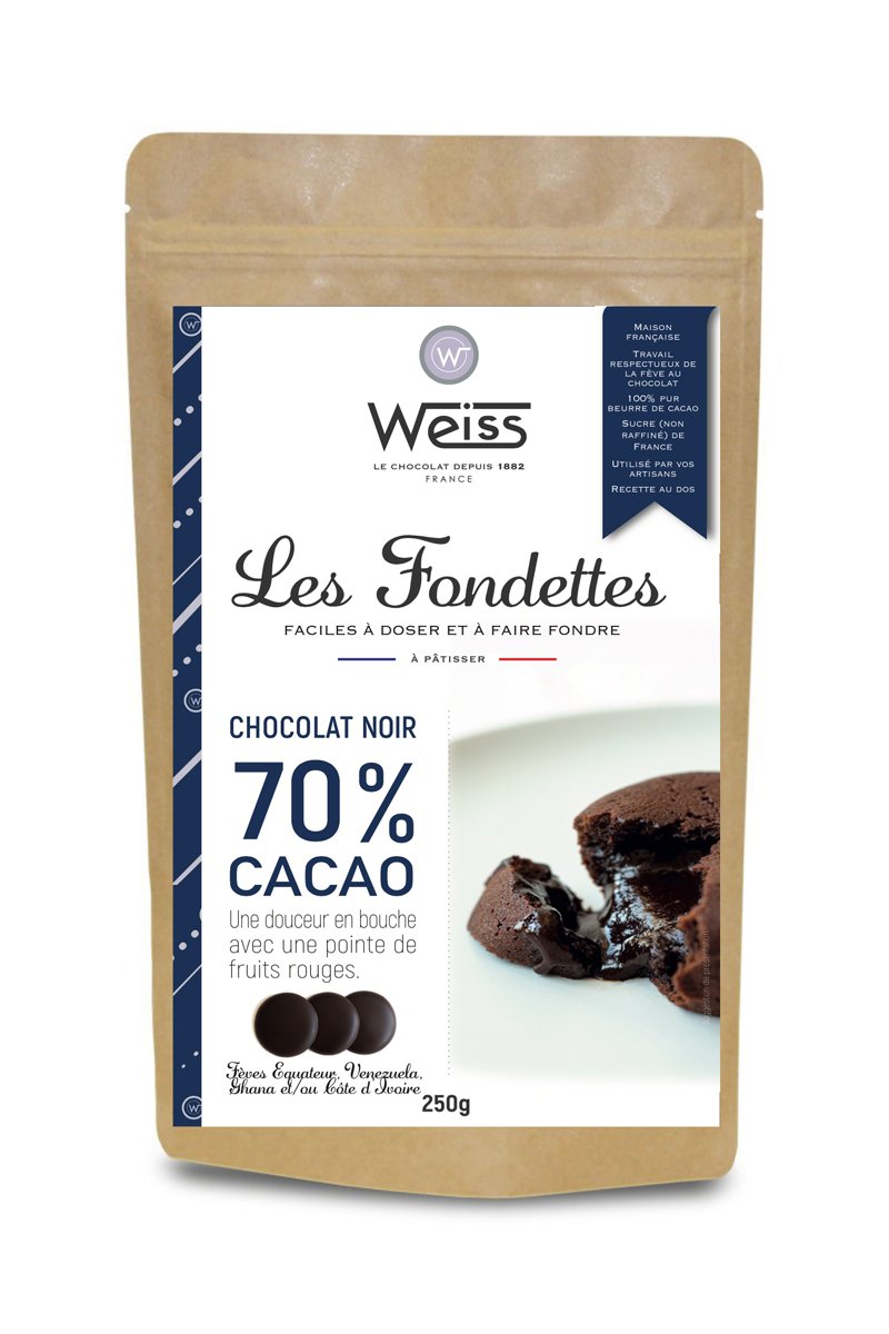 Pour Pâtisser comme un chef, découvrez le sachet 70% de cacao, refermable et 100% recyclable. Il offre une idée recette simple à réaliser sélectionnée parmi le top 10 des recettes les plus réalisées. Un chocolat noir 70% de cacao idéal pour vos créations culinaires. Des fèves d’Equateur, du Venezuela, du Ghana et/ou Côte d’Ivoire.
