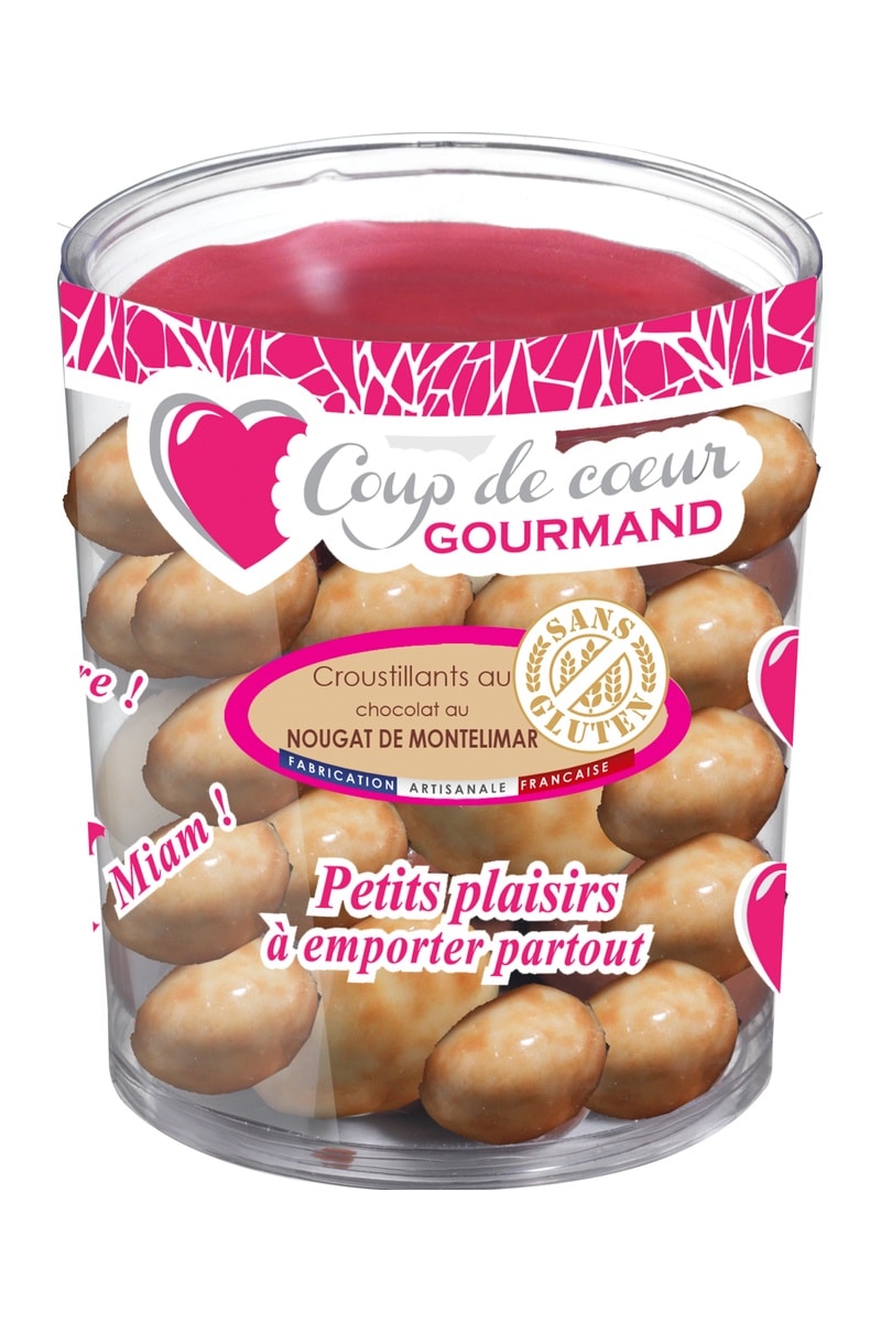 Craquez pour nos croustillants sans gluten au chocolat et crème de nougat : des céréales sans gluten sélectionnées pour leur croquant, généreusement enrobées de chocolat et de crème de nougat pour un équilibre gourmand.