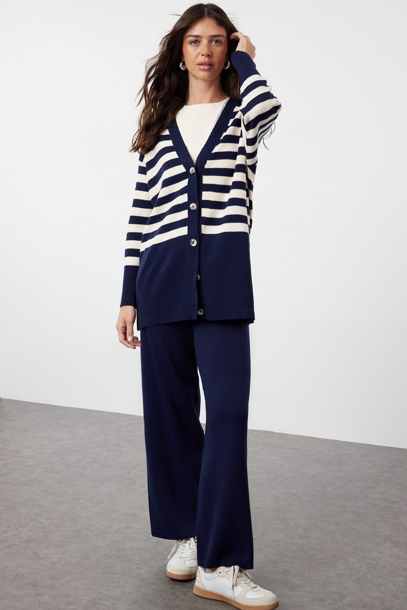 Cardigan et pantalon - Blanc et bleu