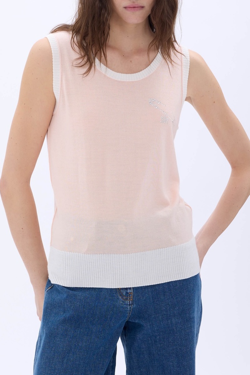Pull sans manches en mérinos et soie.