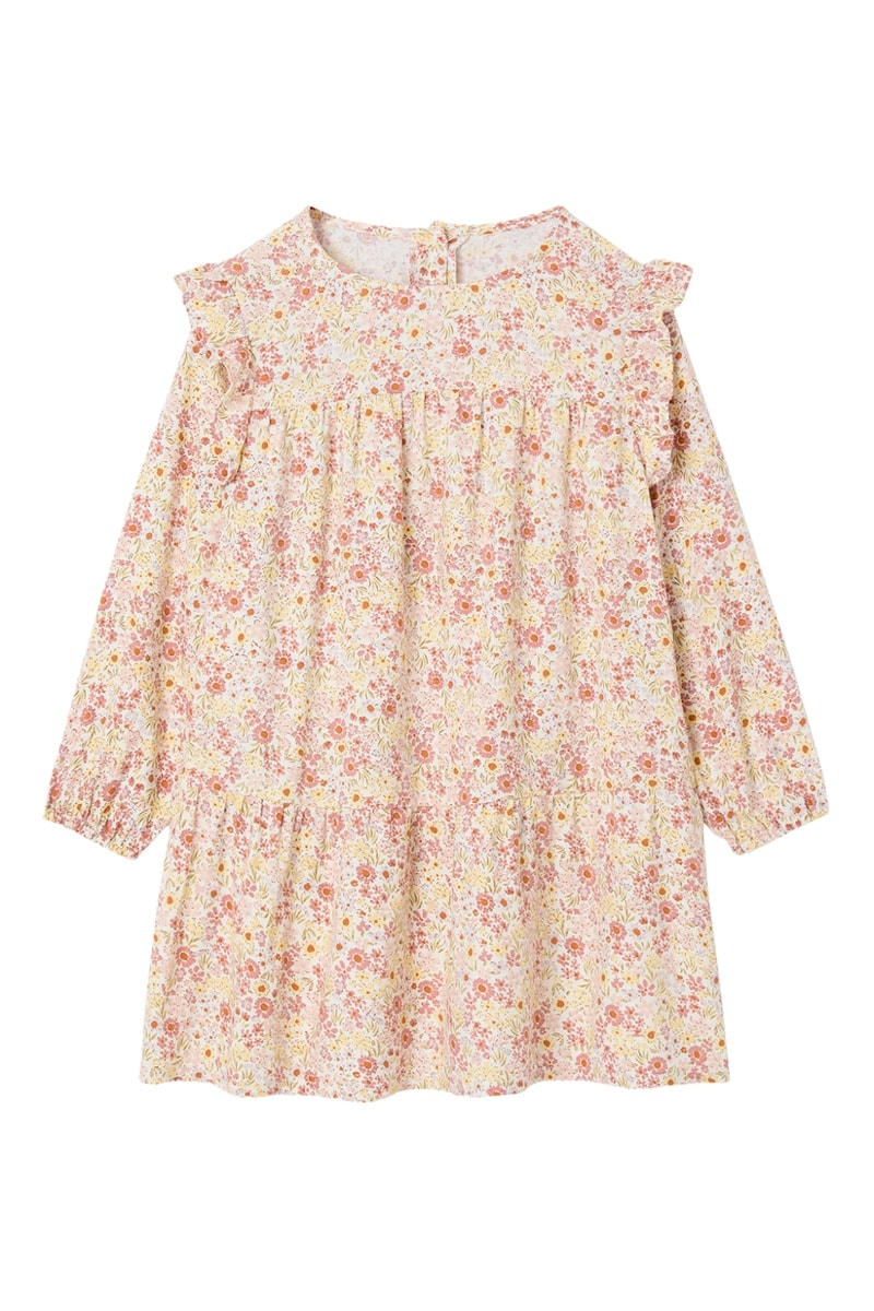 Coloris : écru, vieux rose, jaune et orange