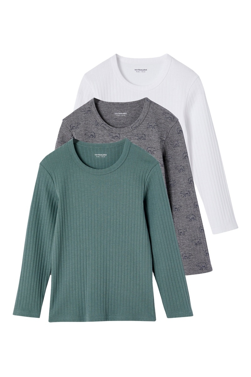 3 t-shirts - Vert émeraude, blanc et gris chiné