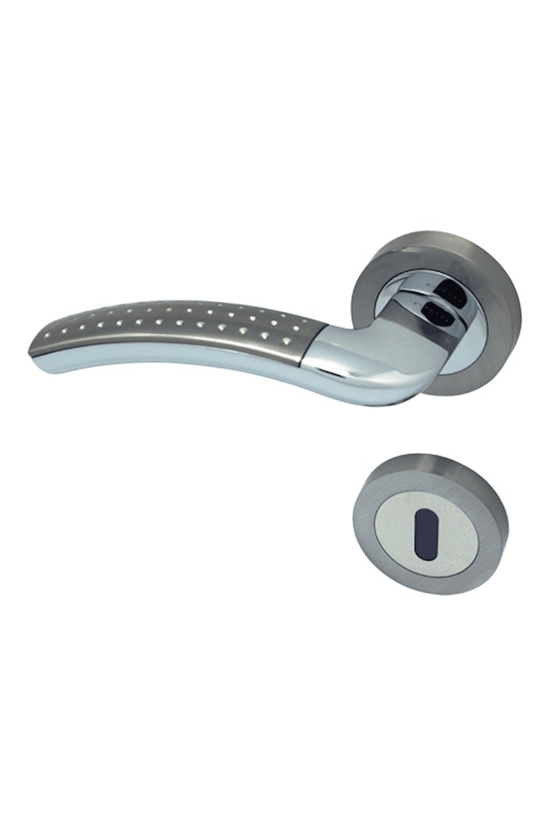 2 poignées de porte à clé Ancône - 11,8 x 2,4 x 6,4 cm - finition chrome/satin/nickel