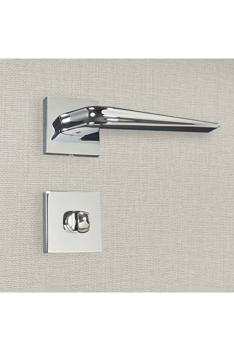 2 poignées de porte à condamnation Lara - 13,7 x 6,2 x 3,8 cm - aspect chrome brillant