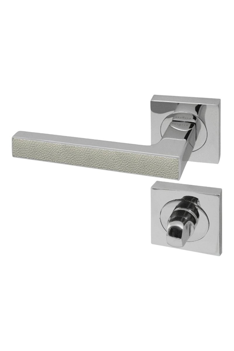Poignée à condamnation Premium - Chromé et imitation cuir argile - Porte de 30 à 50 mm