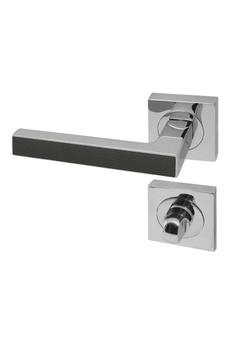 Poignée à condamnation Premium - Chromé et imitation cuir basalt - Porte de 30 à 50 mm