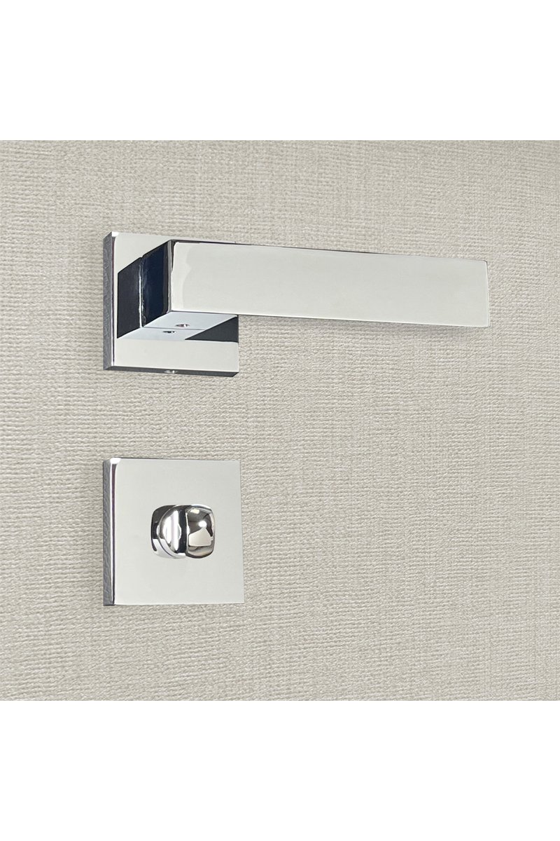 2 poignées de porte à condamnation Europa - 14 x 5,5 x 3,3 cm - aspect chrome brillant