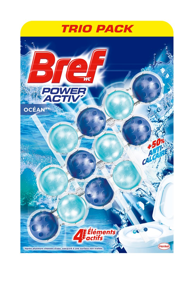 Bref WC Power Activ’, une formule unique aux 4 éléments actifs : empêche le dépôt de calcaire, apporte une mousse nettoyante, une protection anti-saleté ainsi qu’une fraîcheur renforcée pour les toilettes.