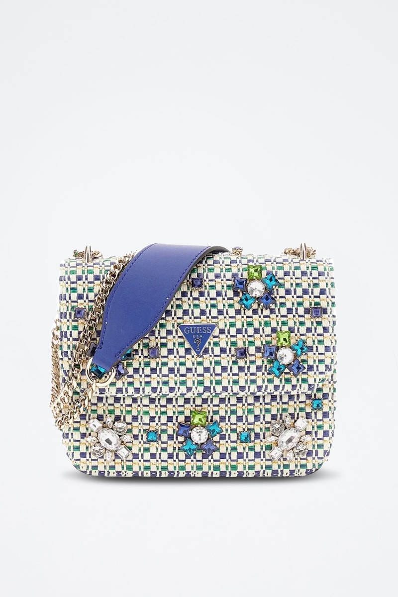 Logo métallique et strass devant.