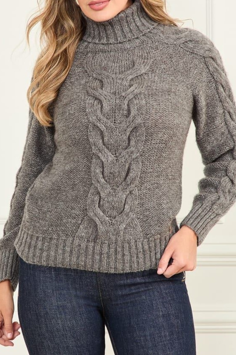 Maille torsadée aux épaules, sur les manches et devant.