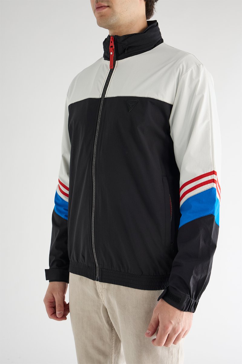 Bandes contrastantes sur les manches.