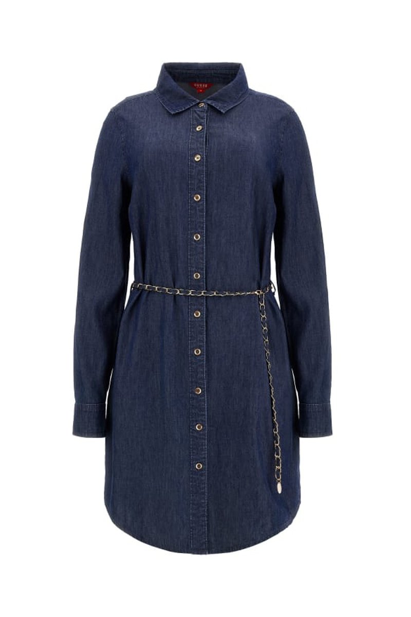 Robe chemise en jean à manches longues.