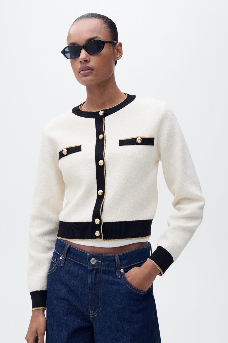 Cardigan en maille à double bordure - Ecru