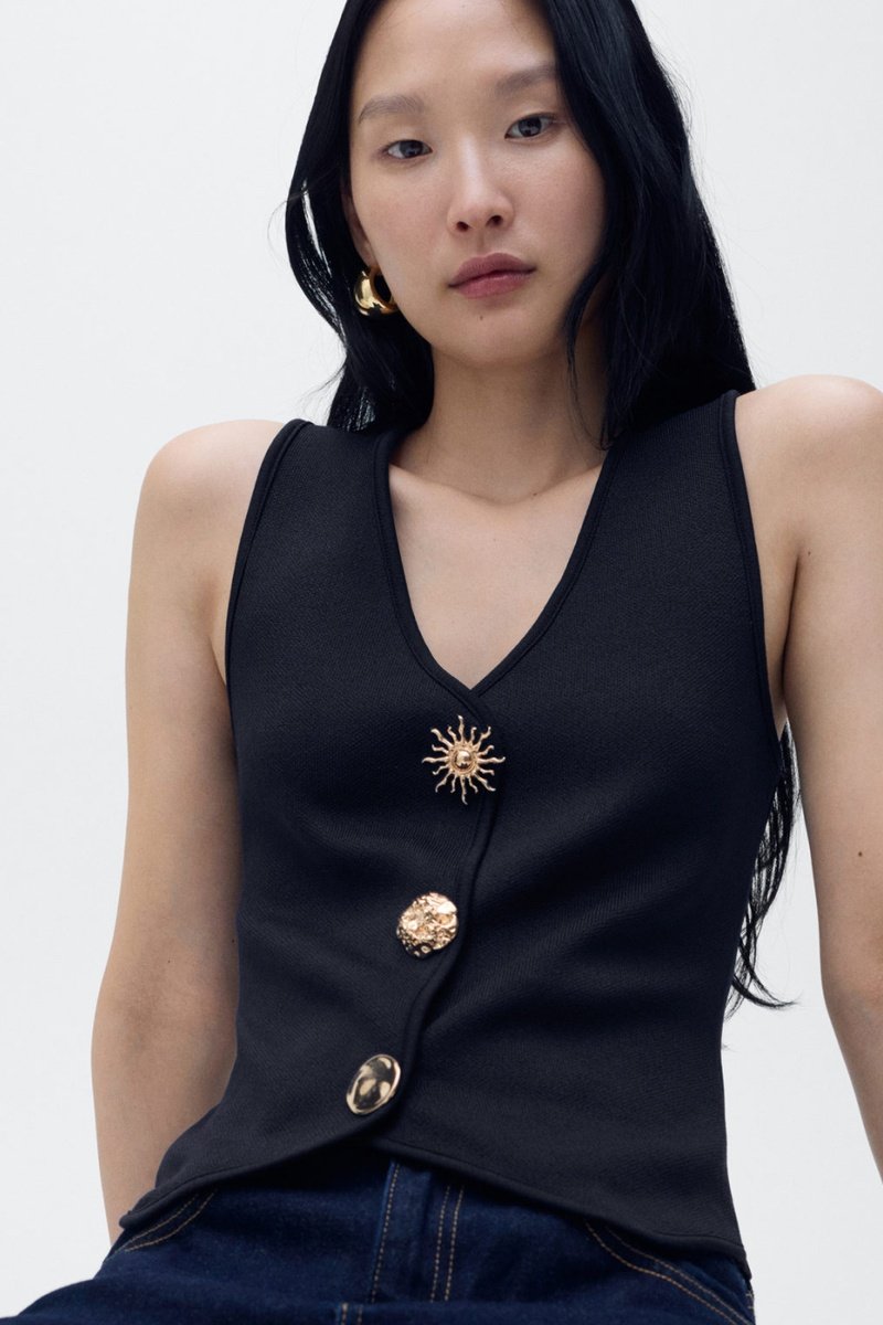 Gilet maille boutons bijoux