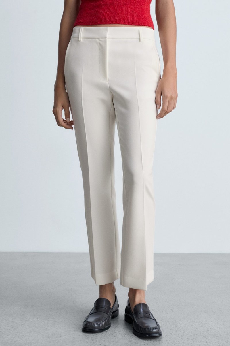 Fermeture éclair avec agrafe et bouton dissimulés.
