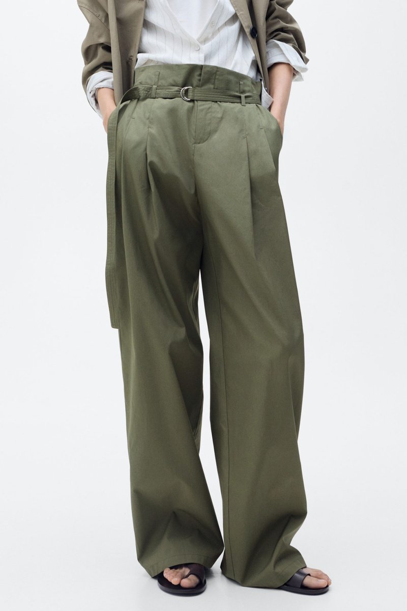 Pantalon wideleg ceinture - Kaki