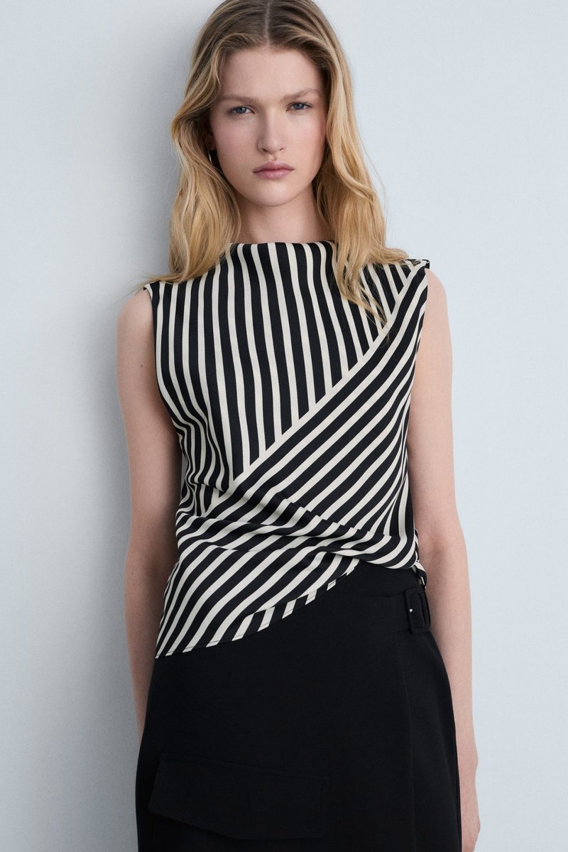 Chemisier col montant rayures - Noir
