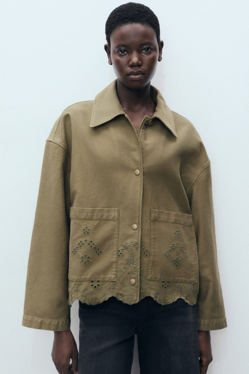Surchemise coton détails ajourés - Kaki