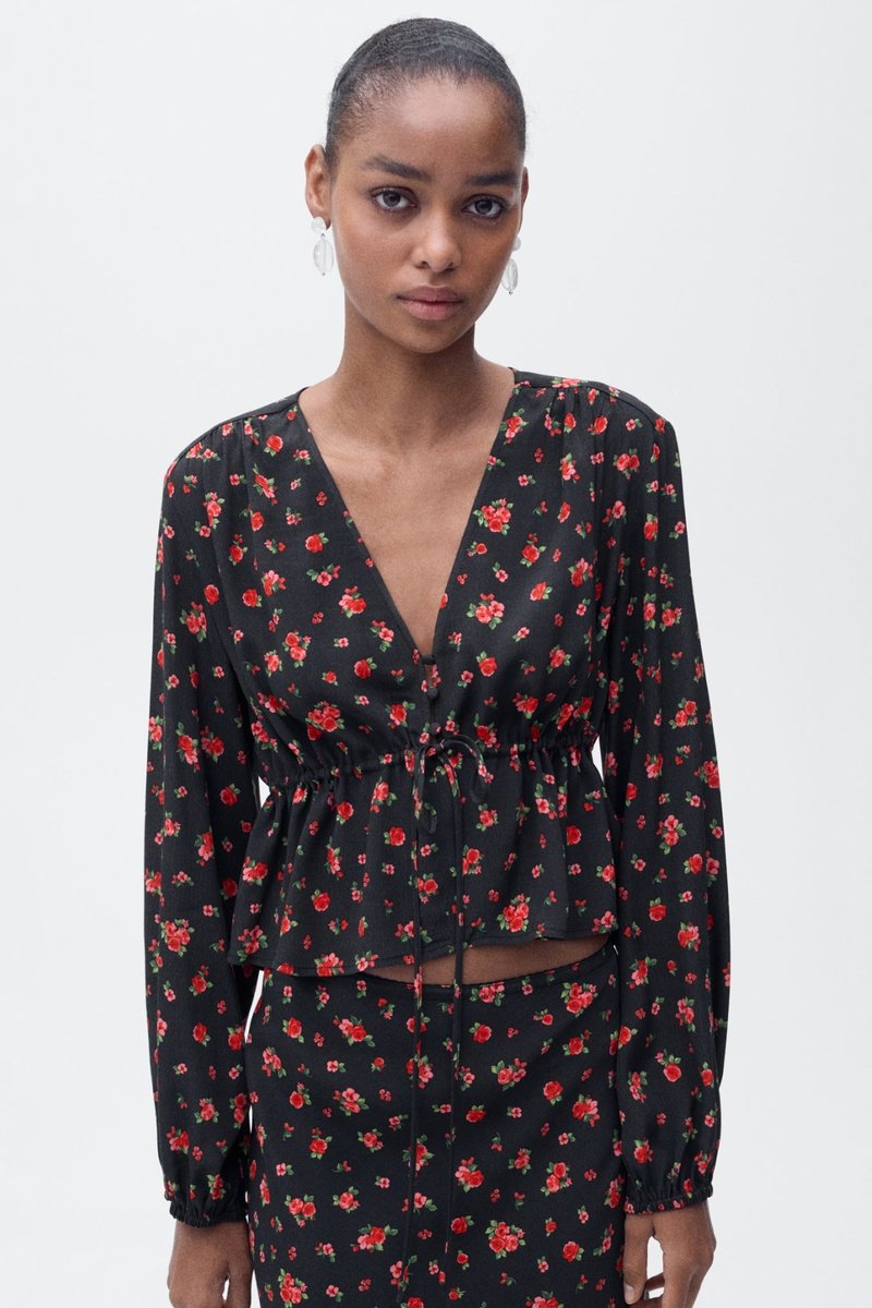 Blouse à fleurs volantée