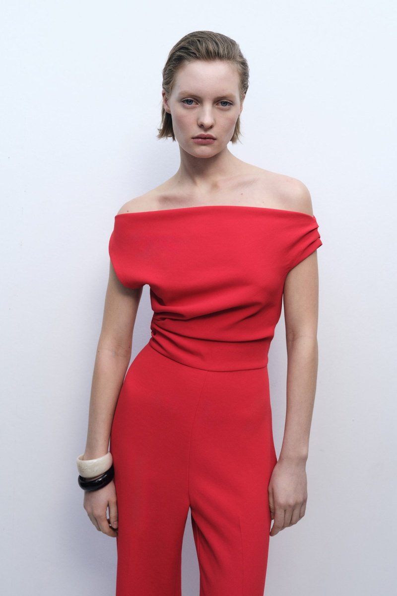 Combinaison asymétrique drapée - Rouge