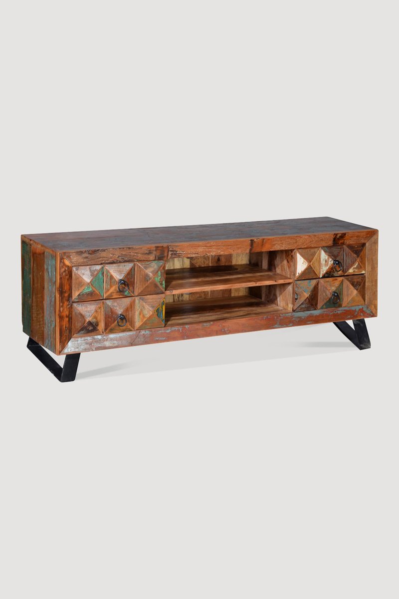 Meuble TV 4 tiroirs - Naturel - Structure en bois recyclé - 155 x 40 x 55 cm