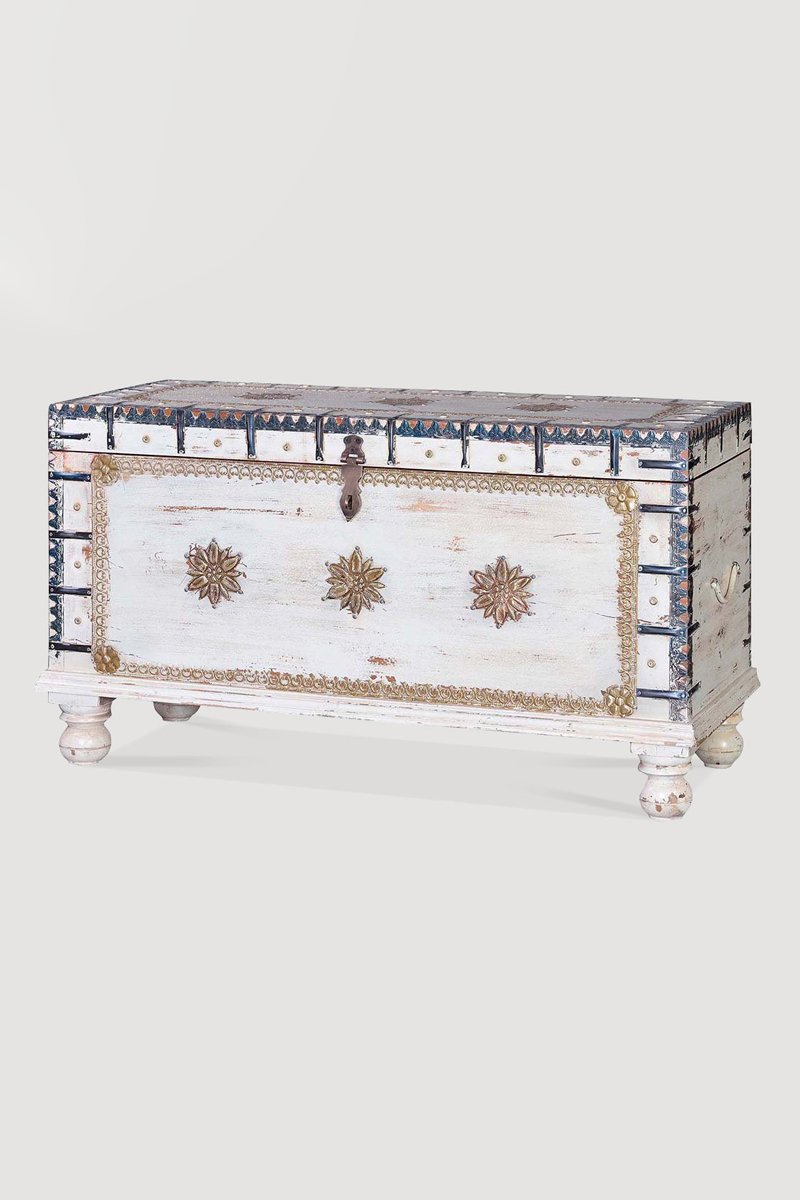 Coffre - Blanc et doré - En bois de manguier et bronze - 100 x 40 x 57 cm