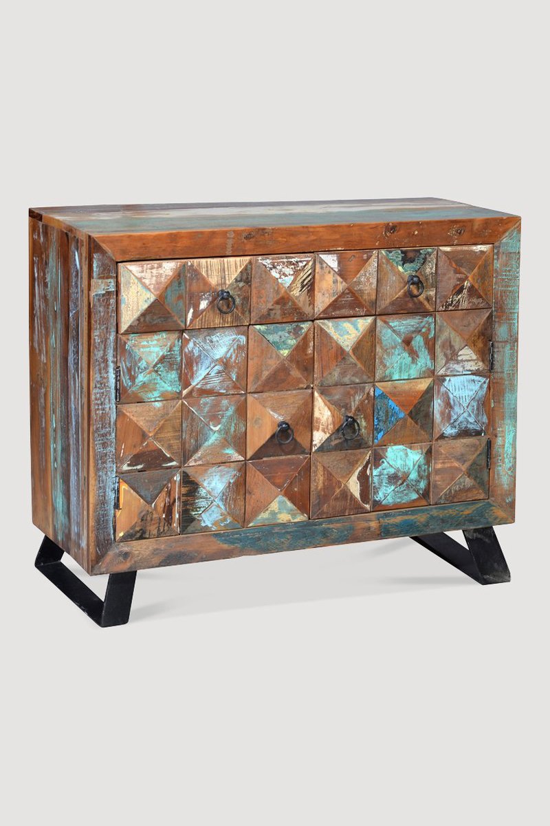 Buffet 2 portes - Naturel et argenté - Structure en bois recyclé - 100 x 40 x 87 cm