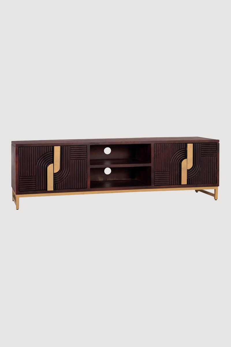 Meuble TV 2 portes en manguier - 57 x 180 x 42 cm