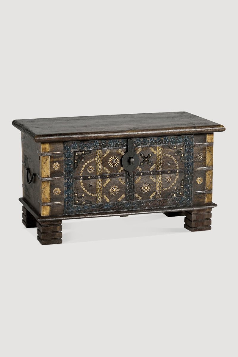 Coffre - Naturel et doré - Structure en bois de manguier - 80 x 46 x 40 cm
