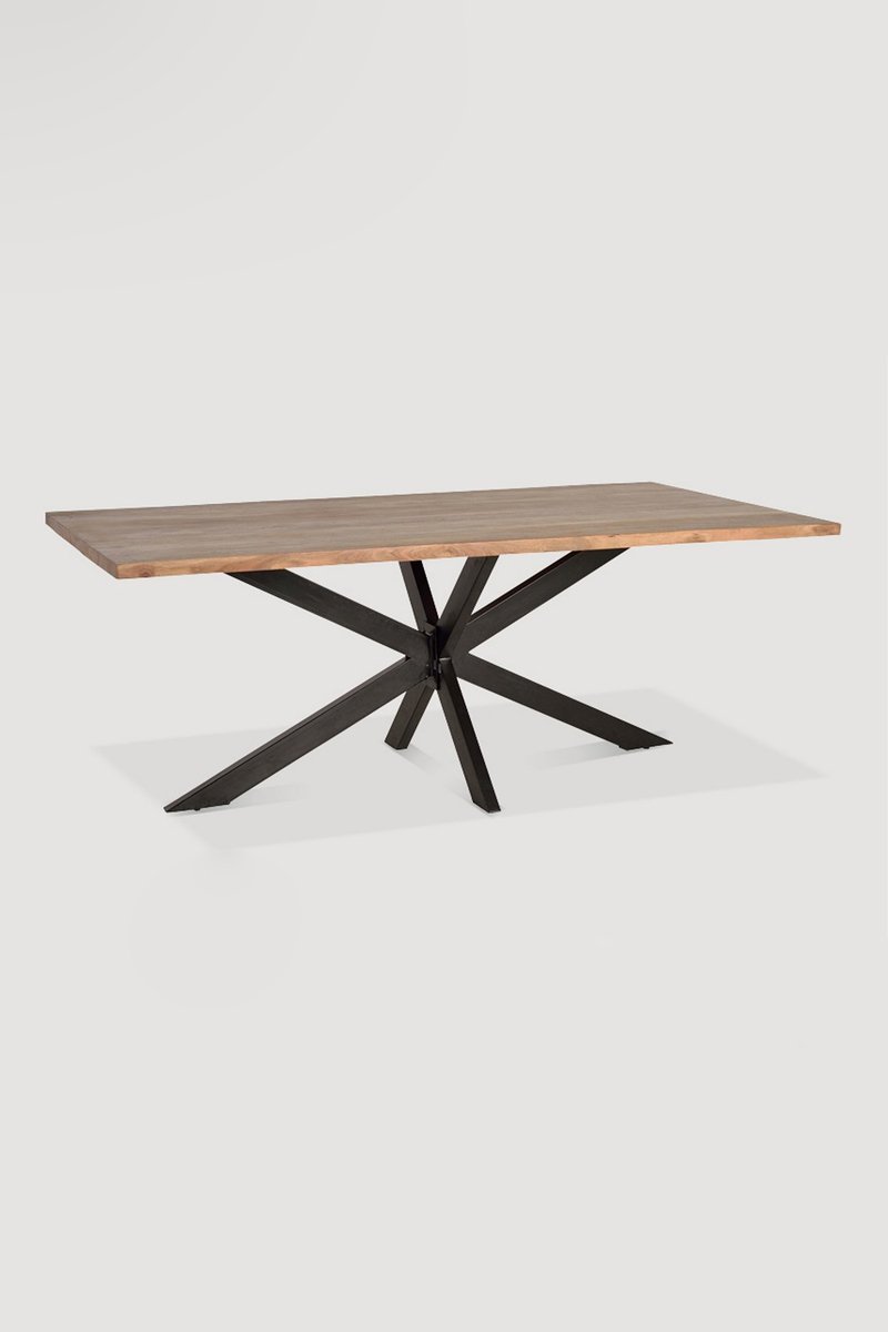 Table à manger - Naturel et noir - Plateau en acacia - 200 x 76 x 100 cm
