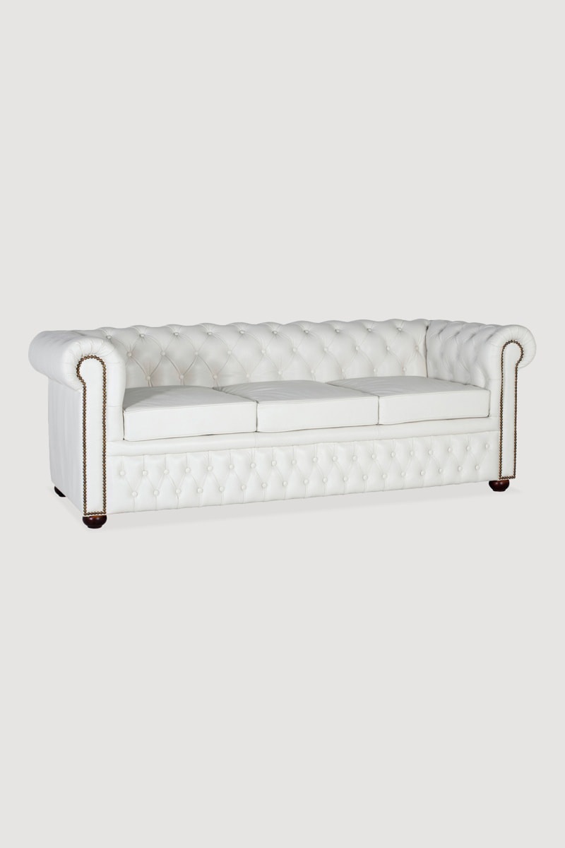 Canapé 3 places - Blanc - En cuir - 72 x 200 x 85 cm