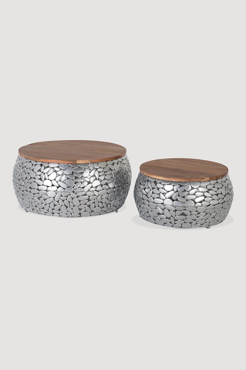 2 tables basses - Naturel et argenté - Plateau en bois de manguier - 55 x 30 / 70 x 35 cm