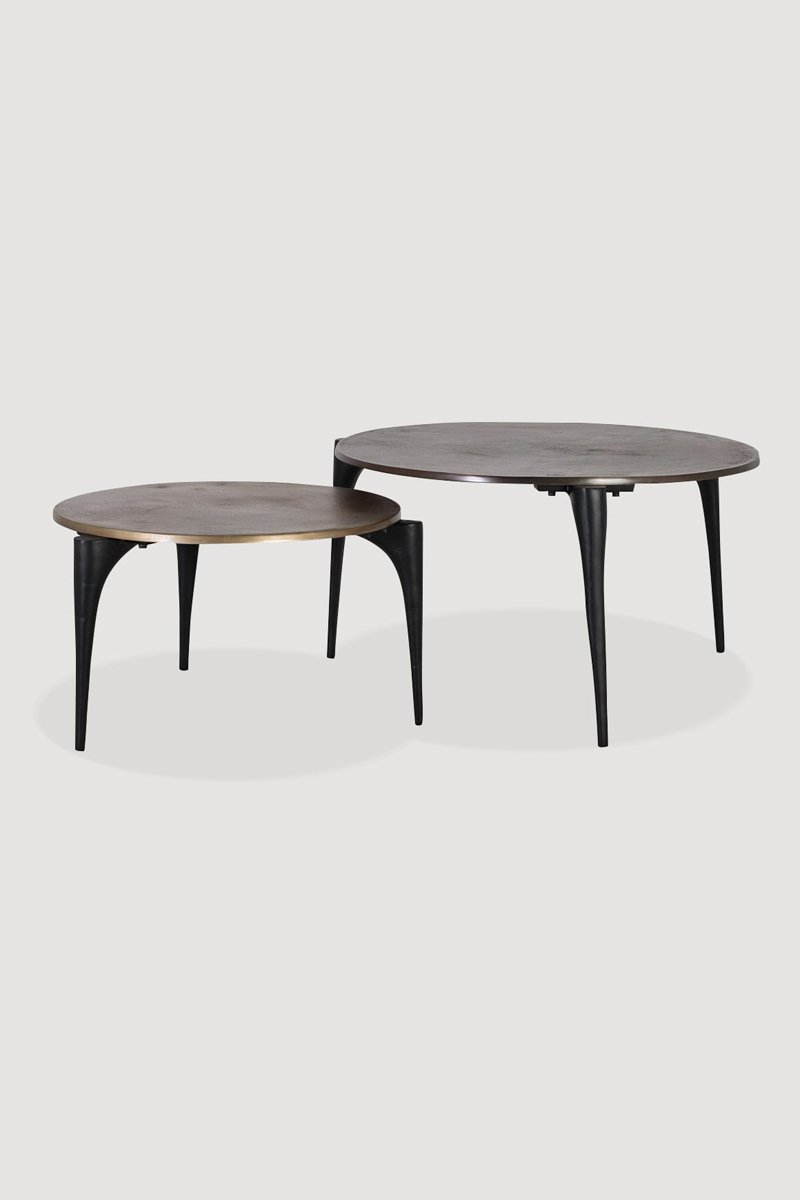2 tables basses - Doré et noir - 64 x 37 x 64 cm / 82 x 45 x 82 cm