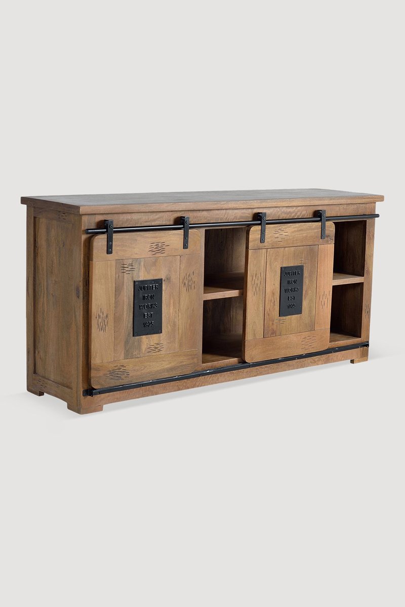 Buffet 2 portes - Naturel et noir - Structure en bois de manguier - 165 x 80 x 45 cm