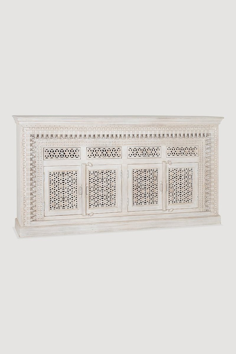 Buffet 4 portes - Blanc - Bois de manguier - 190 x 100 x 40 cm
